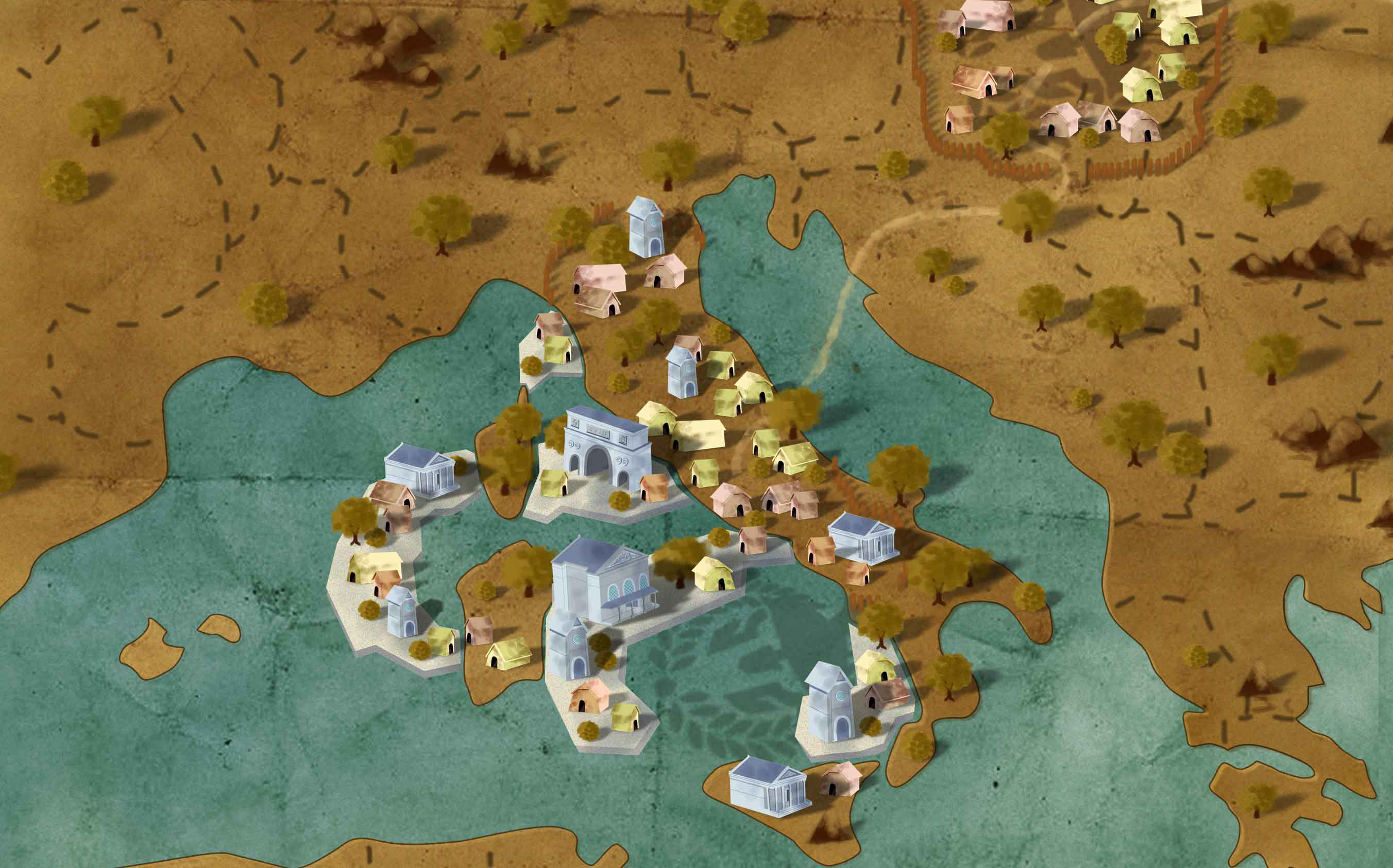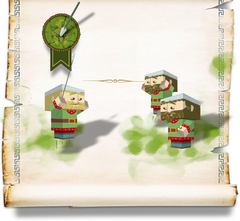 Cada resposta correta renderá mais soldados para sua tropa e permitirá o lançamento dos dados de ataque para combater os agrupamentos romanos em seu caminho.
